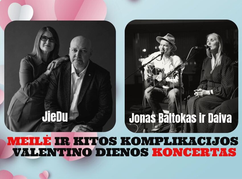 Am Abend des 14. Februar werden Jonas und Daiva, Ramūnas und Vilija ihre Geschichten in Liedern erzählen. Diese Geschichten handeln von uns allen, und Sie werden sich wahrscheinlich auch in ihnen wiederfinden. Seien Sie nicht stolz und kommen Sie und hören Sie sich die Lieder-Geschichten über die Liebe an.
