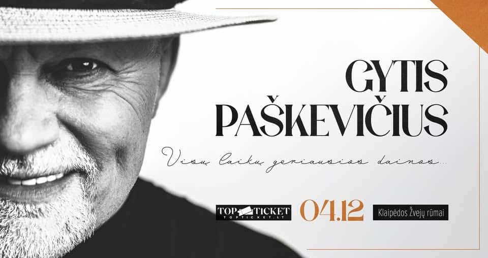 12 April Klaipėda Fishermen’s Palace will host Gytis Paškevičius’ most famous songs – “To Friends”, “To This World”, “My Country”, “To Daughter” and many other songs that have become true musical hits.