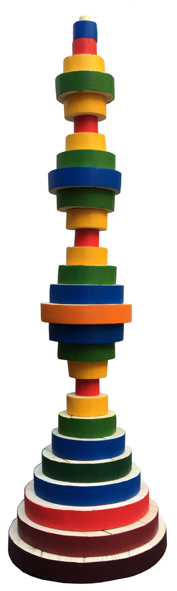 Be piešinių, Grigaliūno ekspozicija tiršta medinių objektų, kurie, sukonstruoti iš atskirų kaladėlių segmentų, atkartojo geometrines abstrakcijas iš paveikslėlių. Iš pirmo žvilgsnio spalvingos skulptūros priminė išdidintus vaikų žaislus kaip mažyliams skirtas edukacines priemones mokytis skaičiavimo ypatumų ar kurti daugialypes, lavinančias vaizduotę ir ugdančias įgūdžius konstrukcijas. Todėl atsižvelgiant į objektų kūrėjo kaip menininko statusą šios konstrukcijos pasidarė panašios į kūrybinių raumenų treniravimo rezultatą, atkeliavusį tiesiai iš autoriaus asmeninio poligono – dirbtuvių, kuriose, tikėtina, nuolat vyksta mokymosi, gamybos, eksperimentavimo procesai. Kartu sunku nepastebėti ir savito objekto inversiško naratyvo, nes labiau tiesioginėmis asociacijomis jie panašūs ne tik į įrankius, kuriais kariaujama, bet ir į tuos, į kuriuos karas nukreiptas. Tai – miestų su dangoraižiais ar kitokiais visuomeniniais centrais modeliai, maketai, ant jų šiandien ir krinta bombos…