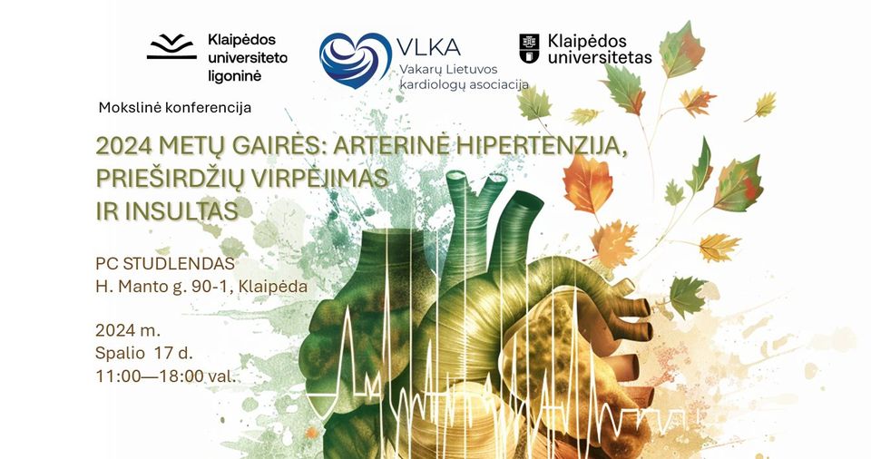 Kviečiame dalyvauti mokslinėje konferencijoje „2024 m. gairės: arterinė hipertenzija, prieširdžių virpėjimas ir insultas“, kuri vyks 2024 m. spalio 17 d. 11:00 – 18:00 val. PC STUDLENDAS, adresu H. Manto g. 90-1, Klaipėda.