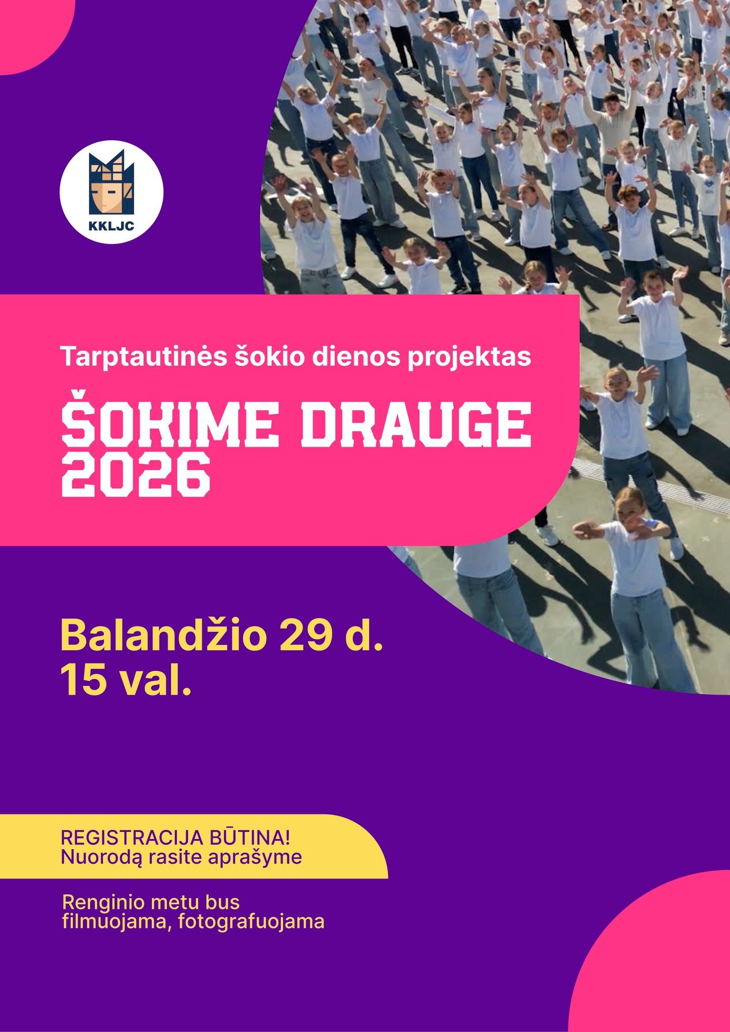 Klaipėdos karalienės Luizės jaunimo centro choreografijos studija „Inkarėlis“ kviečia į respublikinį šokio projektą „Šokime drauge 2026“, kuri skirta paminėti Tarptautinę šokio dieną.